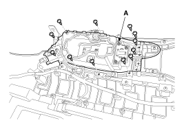 Ослабьте винты, а затем снимите узел крышки открывателя дверцы загрузки (A).