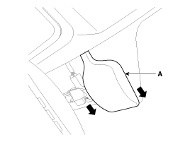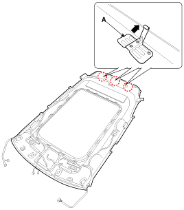 Снимите обивку крыши в сборе (А) с автомобиля через заднюю дверь.