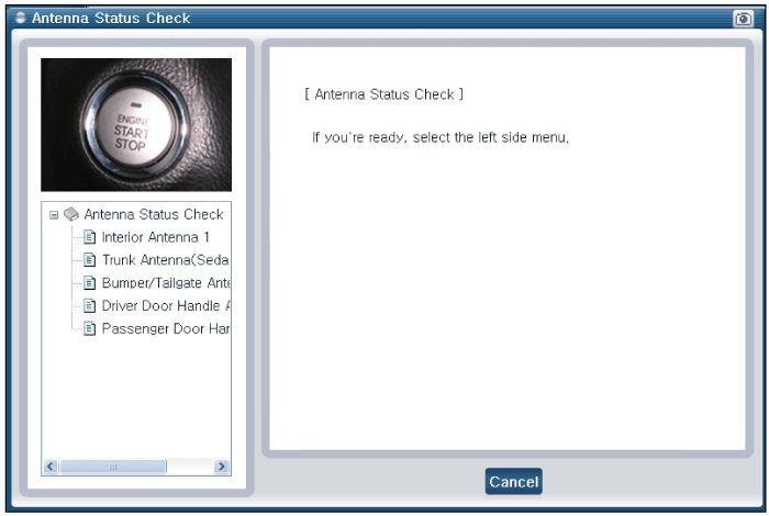 После ВКЛЮЧЕНИЯ ЗАЖИГАНИЯ выберите «ИНФОРМАЦИЯ О СОСТОЯНИИ КЛЮЧА БРЕЛКА».