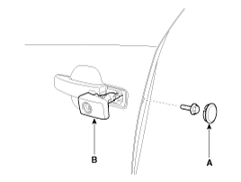 Ослабив крепежный болт, снимите кожух внешней ручки передней двери (В).