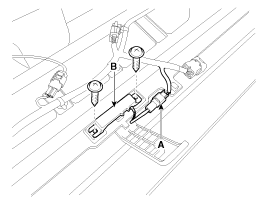 Отсоедините разъем (А), а затем снимите антенну заднего бампера (В), ослабив крепежные винты.