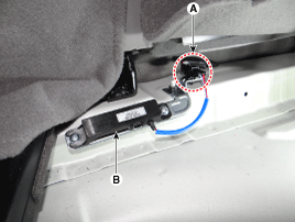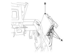 Снимите блок смарт-ключа (В) после отсоединения разъема (А) от блока смарт-ключа.