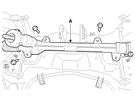 Ослабьте болт (А) и отсоедините узел универсального шарнира от шестерни рулевого механизма.