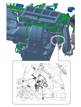 Отсоедините разъем (А), а затем снимите привод регулирования температуры (В), предварительно ослабив крепежные винты.