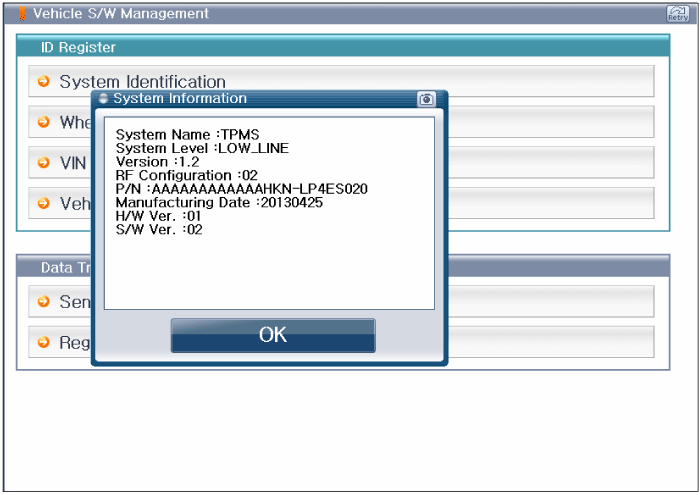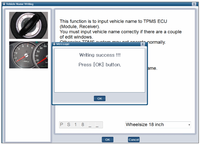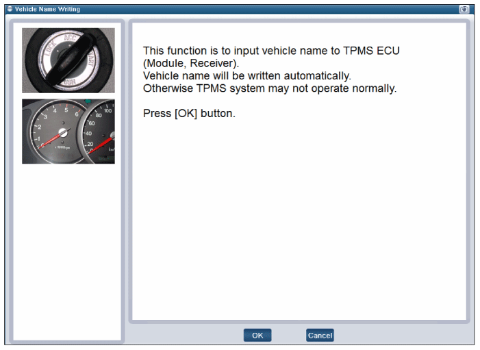 Выберите «модель автомобиля» и «TPMS» на экране выбора автомобиля GDS, затем нажмите «ОК».