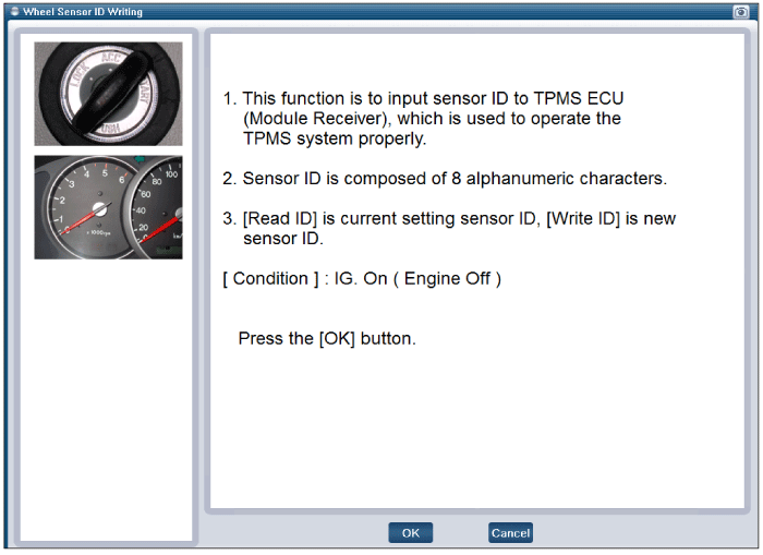 Если датчик TPMS неисправен, необходимо выполнить датчик TPMS.