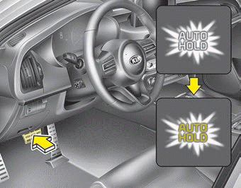 Auto Hold удерживает автомобиль в неподвижном состоянии, даже если педаль тормоза не нажимается после того, как водитель полностью остановит автомобиль, нажав педаль тормоза.