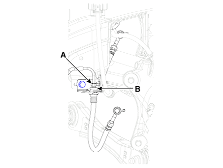 Отсоедините хомут тормозного шланга (В).