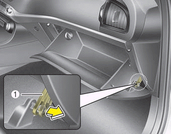 2. При открытом перчаточном ящике потяните за поддерживающий ремень (1).