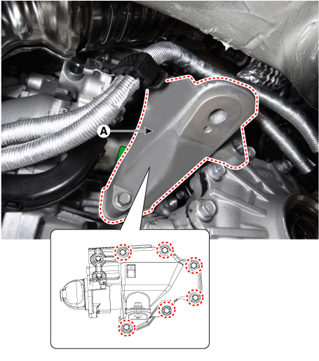 Снимите опорный кронштейн двигателя (А). [Правый]