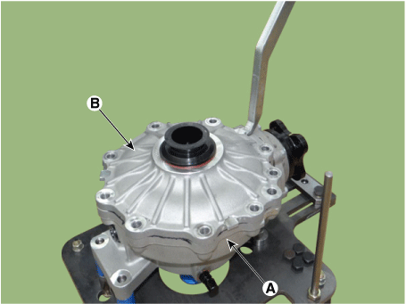 Ослабьте болты, чтобы снять крышку (В) с корпуса дифференциала.