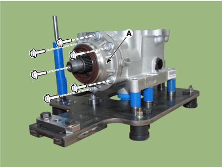 Снимите передний приводной вал. (См. Приводной вал и ось — «Передний приводной вал») |
