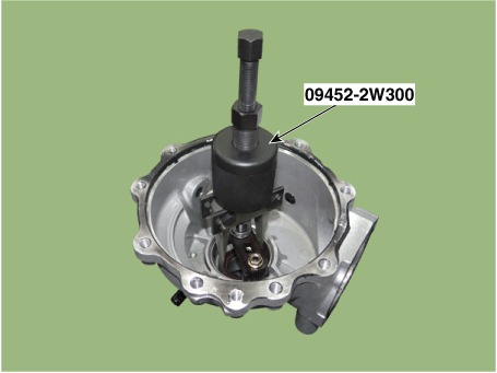 С помощью SST (09452-2W300) снимите прокладку и кольцо подшипника с дифференциальная несущая.
