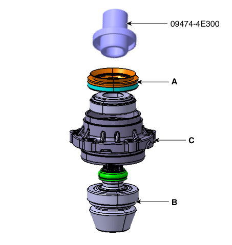 С помощью SST (09474-4E100) установите сальник корпуса дифференциала.