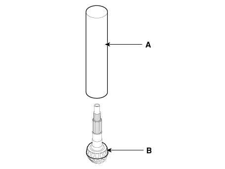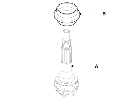 Установите прокладку подшипника ведущей шестерни (В) на ведущую шестерню ведущей шестерни (А).
