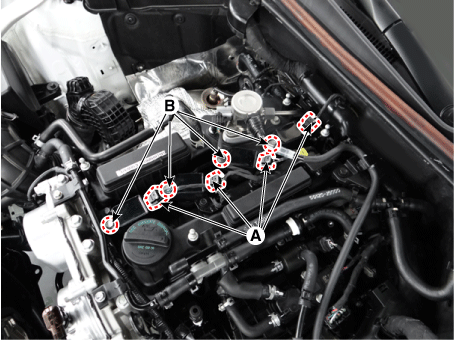 Снимите кожух двигателя. (См. Механическая система двигателя — «Крышка двигателя») |