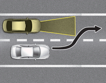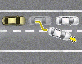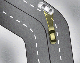 • Когда транспортное средство стоит на месте, а транспортное средство перед вами переключается на следующую полосу, будьте осторожны, когда ваш автомобиль начинает движение, потому что он может не сразу распознать остановившийся перед вами автомобиль. В этом случае необходимо поддерживать безопасный тормозной путь, а при необходимости нажмите педаль тормоза, чтобы уменьшить скорость движения, чтобы соблюдать безопасную дистанцию.