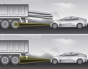 Интеллектуальная система круиз-контроля может быть не в состоянии полностью остановить автомобиль. или избежать столкновения в любой ситуации. Если необходима аварийная остановка, вы должны нажать на тормоза.