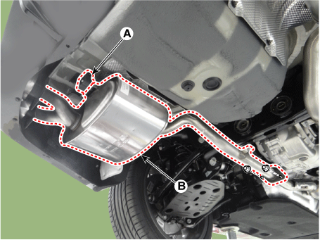 Отсоедините резиновую подвеску (А) от центрального глушителя. |