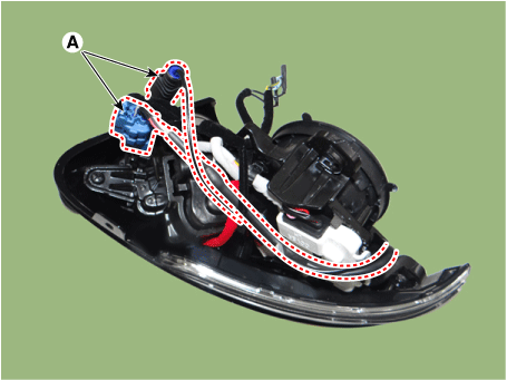Отсоедините разъемы отопителя (B) и разъем индикатора BCW (A). из зеркала.