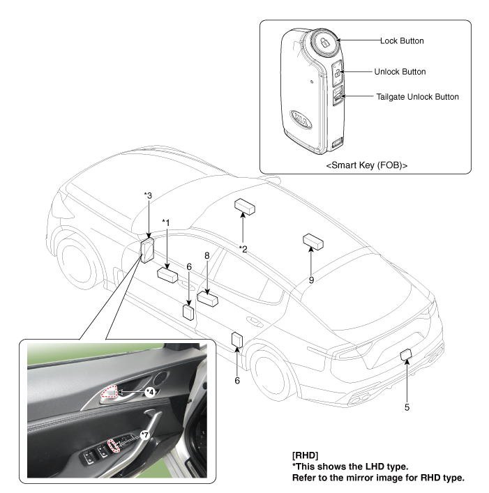 Kia Stinger: электрическая система кузова / дверные замки с электроприводом