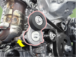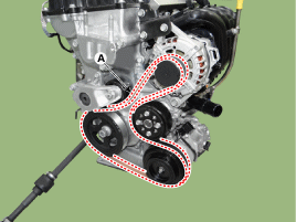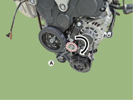 Чтобы ослабить, поверните натяжитель приводного ремня (А) по часовой стрелке.