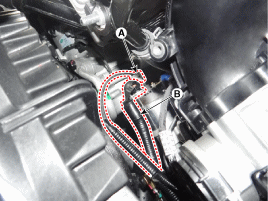 Отсоедините разъем компрессора, а затем, ослабив крепежные винты увеличьте зазор между компрессором (А) и двигателем, чтобы разместить стартер расширять