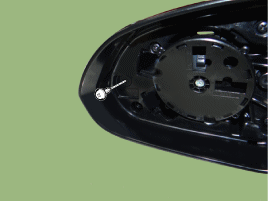 Отсоедините монтажные зажимы (А) и снимите кожух наружного зеркала (А).