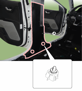Снимите панель подножки (А) передней двери с помощью съемника.