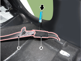 Снимите нижнюю облицовку средней стойки (А) с помощью съемника.