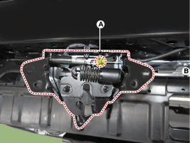 Ослабьте крепежные винты, затем отсоедините замок капота (А).