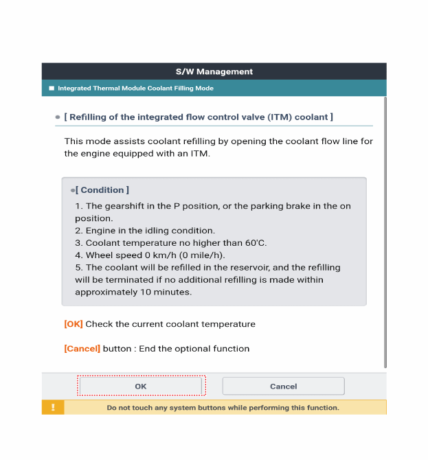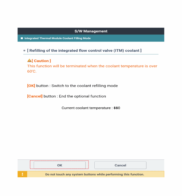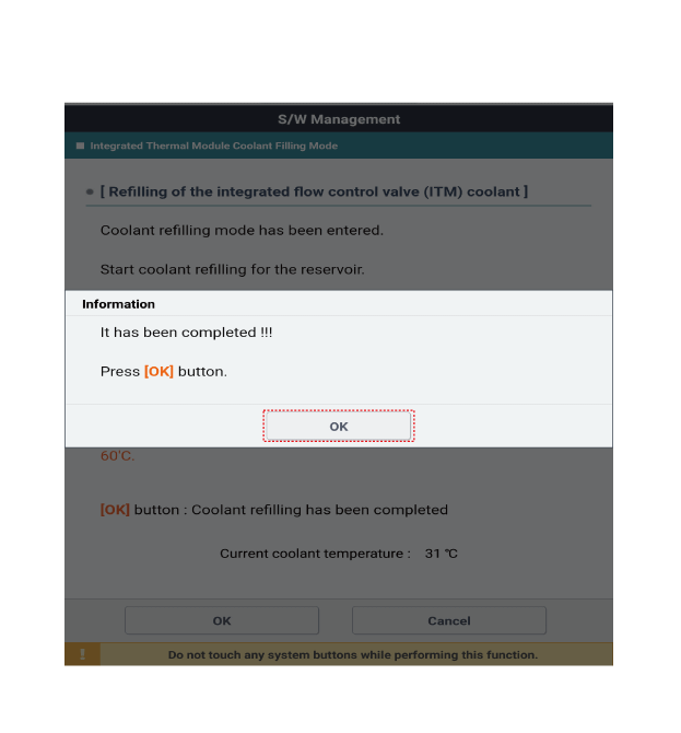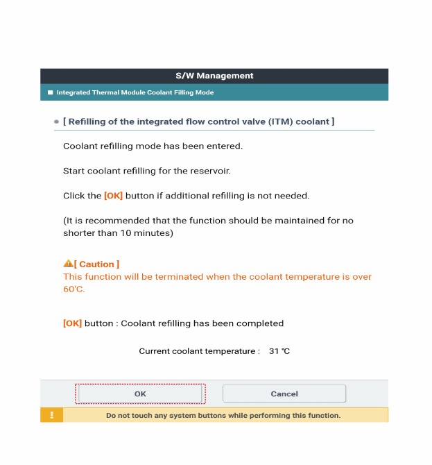 Запустите «Режим заполнения охлаждающей жидкостью интегрированного теплового модуля».