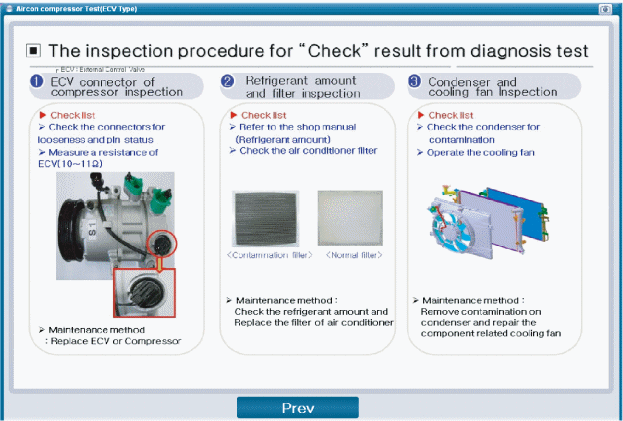 Перед проверкой компрессора ECV проверьте наличие других кодов неисправностей. подарок. Если это так, сначала решите эту проблему. Является Если нет, нажмите кнопку «ОК», чтобы продолжить.