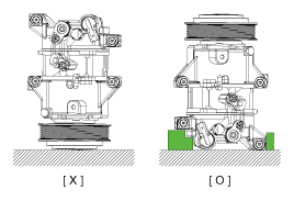 Проверьте длину болтов крепления компрессора, а затем затягивать в установленном порядке.