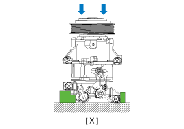 Проверьте работу магнитной муфты. Боковые клеммы компрессора на положительном полюсе аккумулятора (+) и подсоедините отрицательную клемму аккумуляторной батареи (-) к корпусу компрессора. Проверьте рабочий шум магнитной муфты, чтобы проверить ее состояние.