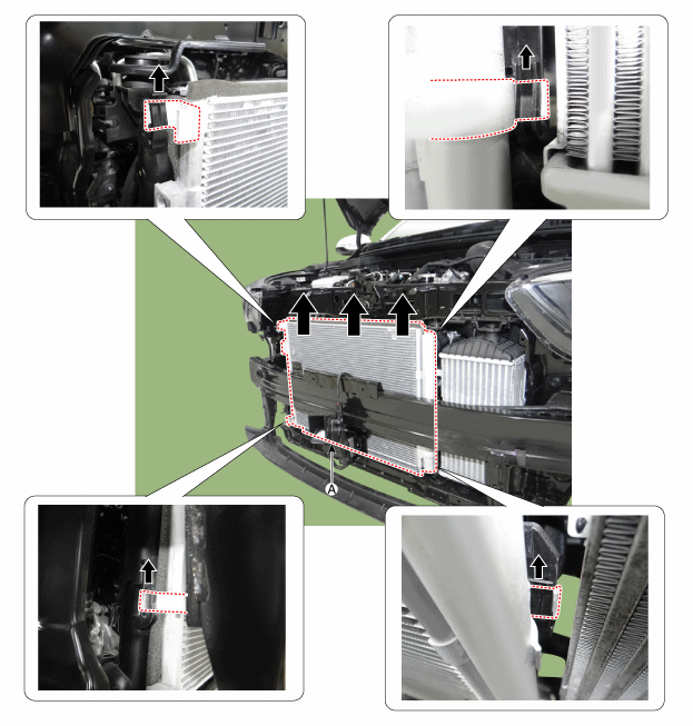 Ослабьте крепежные винты, затем снимите верхний монтажный кронштейн радиатора (А).