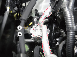 Ослабьте винты, затем отсоедините сливную и жидкостную линии (А).
