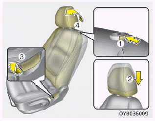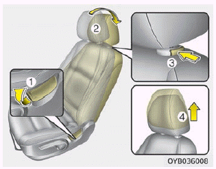 3. Удерживайте кнопку фиксатора Нажмите и потяните подголовник (3). подголовник (4).