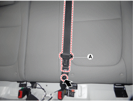 Rücksitzsicherheitsgurt in der Mitte (A) abtrennen.