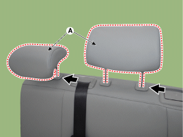 Rücksitz-Kopfstützen (A) herausziehen und dabei beide Seiten des unteren Teils der Führungen zusammendrücken.