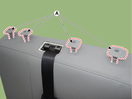 Rücksitzpolsterbezug (A) nach Entfernen der Ringclips auf der Rückseite des Rücksitzpolsterbezugs entfernen.