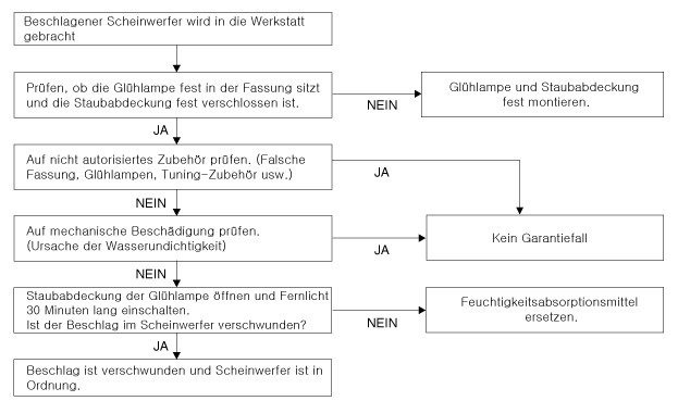 Falls die Scheinwerfer beschlagen sind, anhand der folgenden Anweisungen vorgehen.