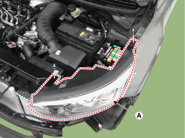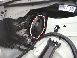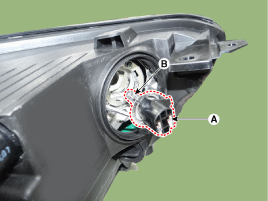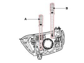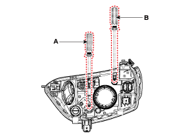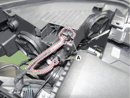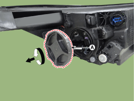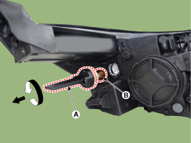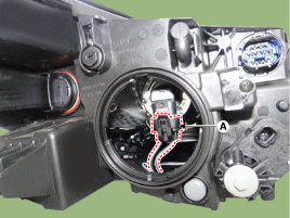 Nach Drehen entgegen dem Uhrzeigersinn die Fern-/Abblendlicht-Glühlampe (A) aus der Scheinwerfereinheit entfernen.