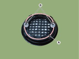 Die Befestigungsschrauben (B) festziehen, nachdem die feuchtigkeitsabsorbierenden Halterung (A) angebracht wurde.