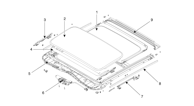 7. Schiebedach-Ablaufleistenverbindung 8. Шибедах-Изольербанд 9. Шибедах-Аблауфляйстеншайн |