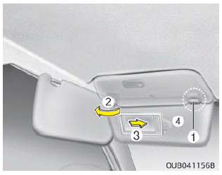 Um den Schminkspiegel zu benutzen, klappen Sie die Sonnenblende herunter und schieben Sie die Spiegelabdeckung (3) на сайте.