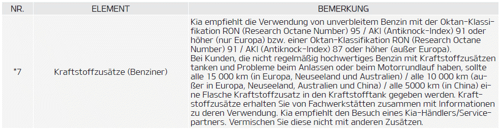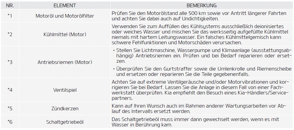 Kia Stonic: Wartungsplan / Standard-Wartungsplan - für Benzinmotor [außer Europa (einschließlich