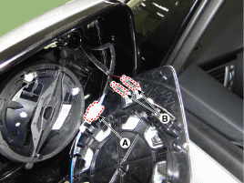 Spiegel (A) in der Richtung, die in der Abbildung dargestellt ist, mit einem Schlitzschraubendreher (-) entfernen.