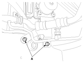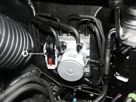 Ослабьте гайки кронштейна HECU (A), затем снимите HECU и кронштейн.