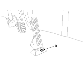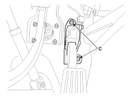 Снимите установочный болт (B) и гайки (C), а затем снимите педаль акселератора.